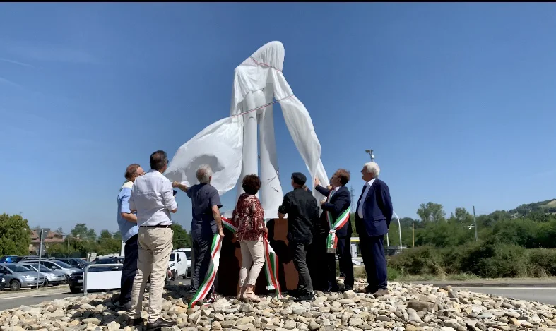Poi il telo bianco e la fascia tricolore avvolgono il bianco marmo in attesa dell’imminente inaugurazione. Gli annunci, le foto, le insegne, i dialoghi, ed infine gli amici, la famiglia e tante persone presenti, cariche d’affetto.