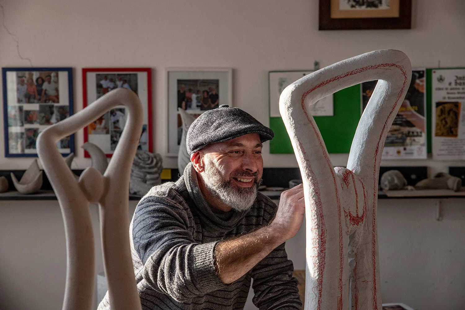 Togliere il grosso del materiale, è la fase di sbozzatura, di sgrossatura. Dopo arriva una fase di scultura, quasi di modellazione, dove si liberano le forme. Quindi una fase di continui entusiasmi e in continua evoluzione.