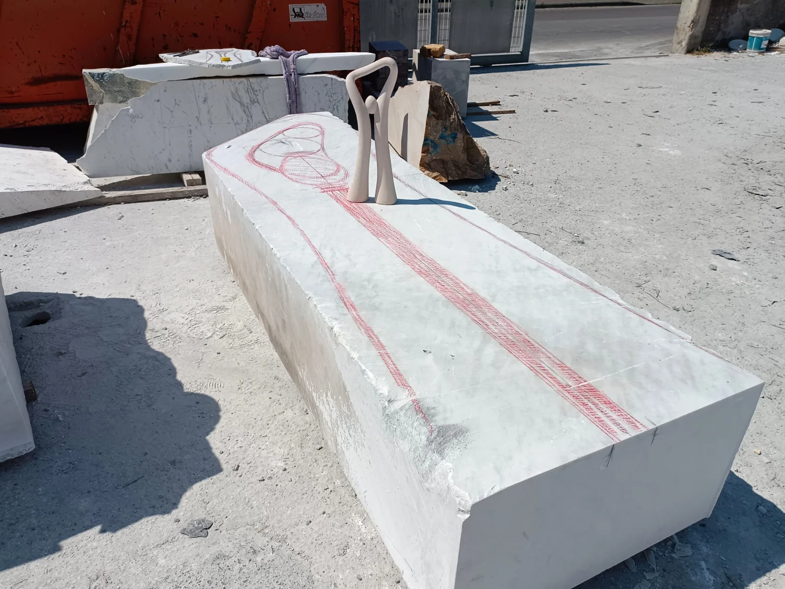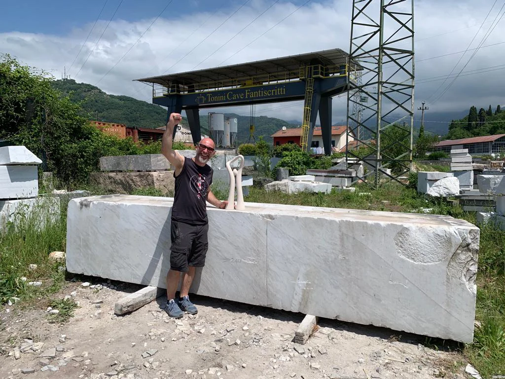 La scelta del marmo è stato un momento pazzesco e bellissimo. Mi hanno chiamato da Carrara che avevano trovato il marmo e subito sono sceso impaziente verso il laboratorio Rocchi di Carrara.